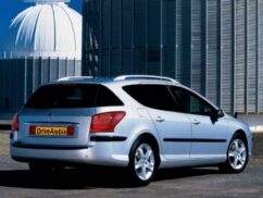 The front passenger area is very spacious, with nicely bolstered seats, storage pockets on the doors and a cooled glove box with built-in light. However, there is only one flip-out cup holder in the front, and there is no storage space in the center console itself. Rear seat space is not the most abundant either, with limited legroom and headroom, but some models come with a centre armrest that has built-in cup holders. The sleek body of the 407 sedan is the reason for the limited rear space, with a luggage trunk area that is actually less than the old 406 model. The 407 SW wagon can hold numerous large suitcases though. The seats are firm and hold the passengers in well during hard cornering. A durable but roughly textured cloth wraps the seats in the 2.0L models, while the 2.2L and 3.0L get the full leather treatment. The leather steering wheel is fully adjustable, as are the front seats. Only the V6 model gets electric front seats. The doors are rather heavy, and close with a loud slam uncharacteristic of European cars. We found the air-conditioner to be somewhat weak, taking ages to cool the interior during midday. On the plus side, there are air-conditioning vents for the rear passengers too.