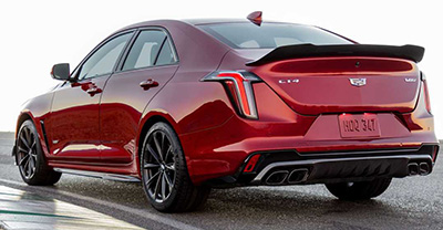 An all-new Cadillac CT4-V made its debut in 2020, replacing the ATS-V. In the GCC, the CT4-V model gets a 2.7-litre turbocharged 4-cylinder engine with a 10-speed automatic transmission. A CT4-V BlackWing was introduced in 2022 which gets a more powerful 3.6-litre twin turbo. Standard features for the 2023 Cadillac CT4-V include power windows, power mirrors, LED headlights and tail lamps and fog lamps, updated CUE entertainment system with BOSE speakers, magnetic ride control, alloy wheels and adaptive forward lighting. Safety features in the 2023 Cadillac CT4-V include ABS and traction control, sensors to warn driver of potential dangers, safety seat alert which sends immediate impulse through the seat cushion from the direction of the potential hazard.