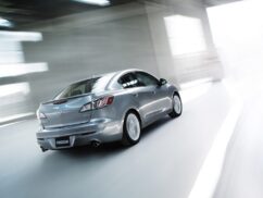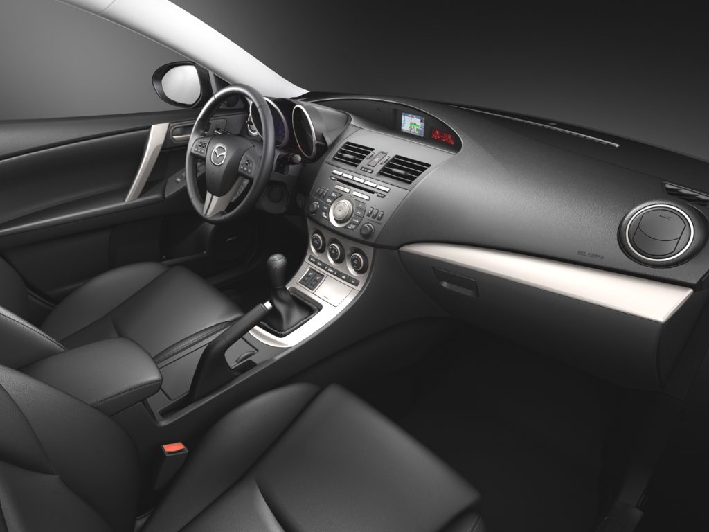 The American Mazda 3, also known as ‘Mazda3’ will have features like dual-zone automatic climate control, Xenon self-leveling headlights, push-button start, hands-free Bluetooth, iPod integration and an optional leather interior. Safety features such as four-wheel-disc brakes, ABS, head restraints and six airbags are all standard, while stability control is optional.