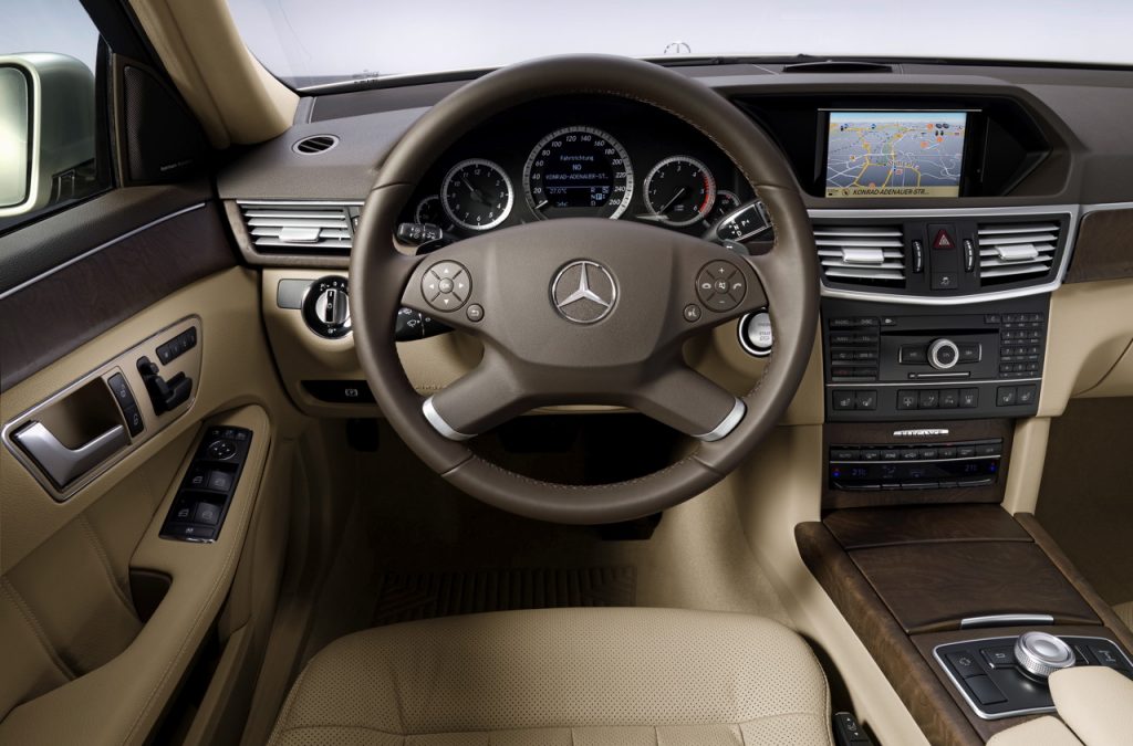 As with all Mercedes-Benz models, the 2010 E-Class midsizer comes in countless variants, and that’s just for the sedan. The exterior gets either oval foglamps or LEDs on the front bumper, trapezoidal or oval exhaust tips under the rear bumper, and various alloy-wheel options. The new model is ever-so-slightly larger than the outgoing model, with torsional rigidity up by 30%, and it is apparently more aerodynamic than before, even with the upright front-end designed to satisfy European pedestrian-safety regulations.