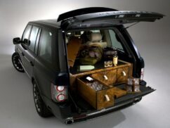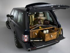 In the boot is a bespoke gun cabinet, hand-crafted in veneers to match the woodwork across the rest of the interior. Although it is itself removable for when more luggage carrying capacity is required, it is locked to the boot floor for security and safety. It has three drawers, fitted to carry eight further matching Holland & Holland crystal tumblers and flutes, customers’ own shotguns, a cleaning kit for them as well as cartridges and the bag in which to carry them. Additional drawers are available with alternative interiors so that, between the end of one shooting season and the beginning of the next, it can serve whatever purpose the vehicle’s snooty owner requires.