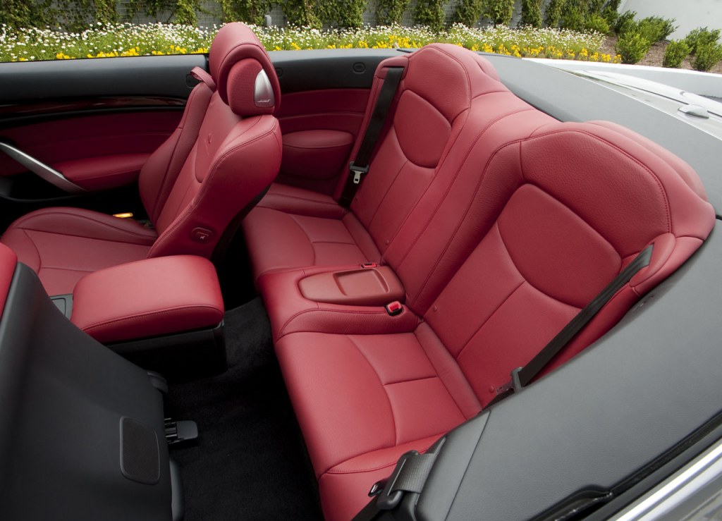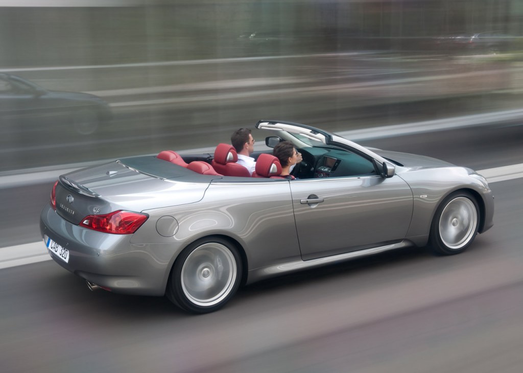 The G37 is as expected, featuring an interior similar to that of the G37 coupe. Infiniti claims that the car was designed to seat four people in comfort. Other convertible-specific features include speakers in the headrests, and a stereo that adjusts for wind noise depending on whether the top is up or down.