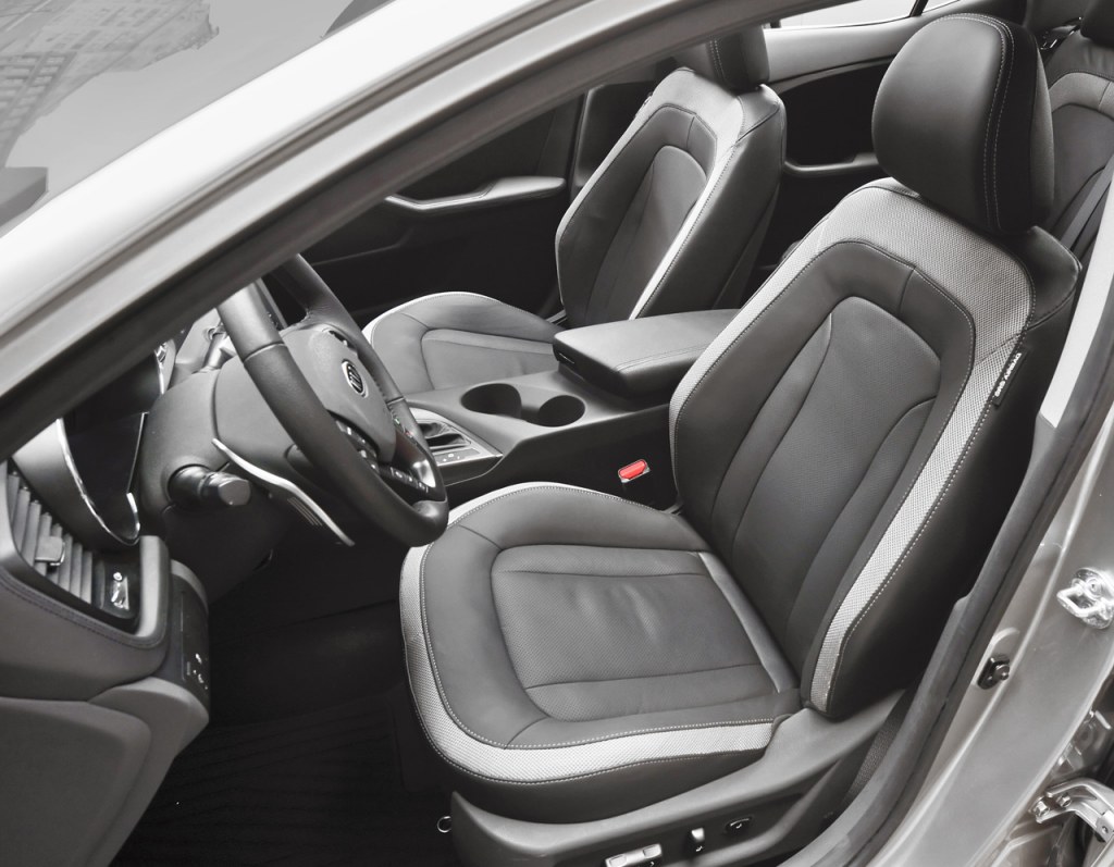 For consumers looking for “sporty” appeal, the Optima SX adds black leather seats instead of cloth ones, black interior trim with carbon insert film and metal accent, “Supervision” gauge cluster with LCD display, centre fascia and meter housing, soft trim with French seams, steering wheel paddle shifters, metal pedals and lighted metal door scuff plates.
