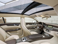 The exterior follows the ‘four-door coupe’ design of a low sloping roof-line with small windows. The front design also has lot of design cues from the SLS AMG. The front grille, for the first time in a Mercedes Benz, is not integrated with the bonnet. It also gets a full panaromic roof. Full LED headlamps and tail-lights are installed on this model. A twin exhaust system with polished exhaust covers are integrated into the rear bumper. A curved spoiler is also added. It gets five-spoke 20-inch alloy rims wrapped with 255/30 tyres in the front, and the rear gets 285/25 tyres.