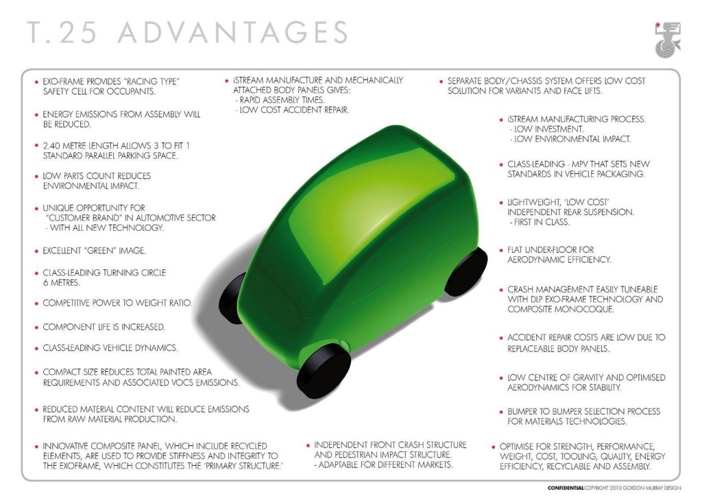 Gordon Murray, designer of the legendary McLaren F1, has released the first images of his latest project, the T.25 City Car. In development now for half a decade by his firm, Gordon Murray Design, the T.25 started life as a doodle on a restaurant napkin.