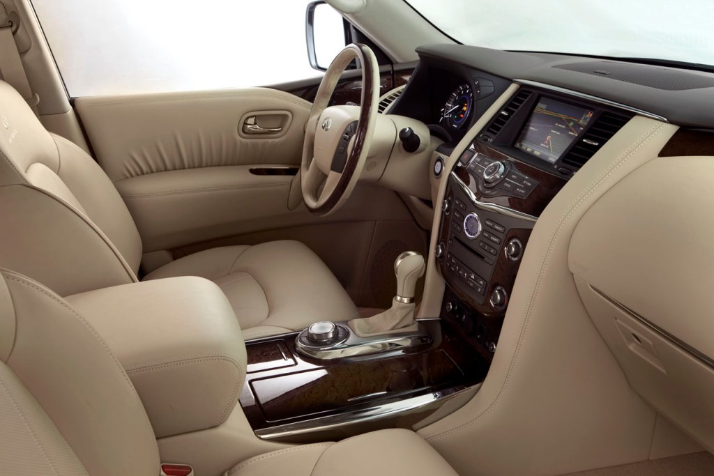 Introduced alongside the all-new Infiniti M37 and M56 models at the event, the 2011 Infiniti QX is powered by the same 400 hp 5.6-litre V8 that powers the 2010 Nissan Patrol. The QX also shares the body-on-frame platform, suspension, general body parts, tech features and most of its interior bits with the Patrol, so we are still uncertain about how exactly the QX is different from the Patrol, beyond the front end and minor trim bits. There is some mention of semi-aniline leather and lane-departure warning systems that may or may not be unique to the Infiniti version.