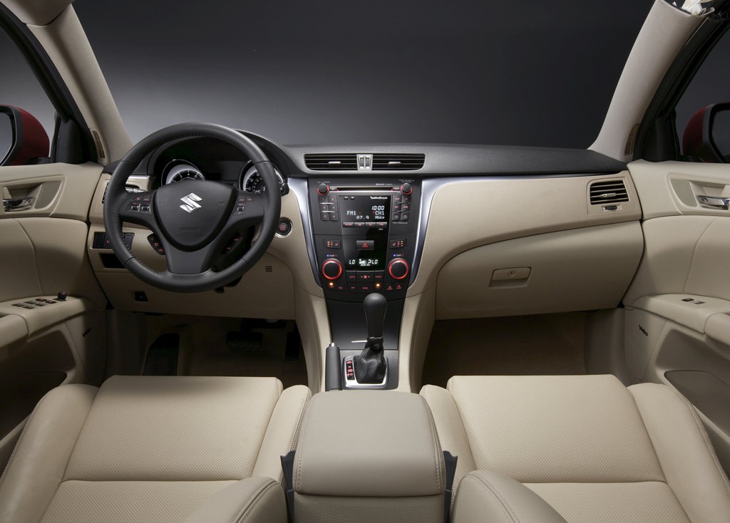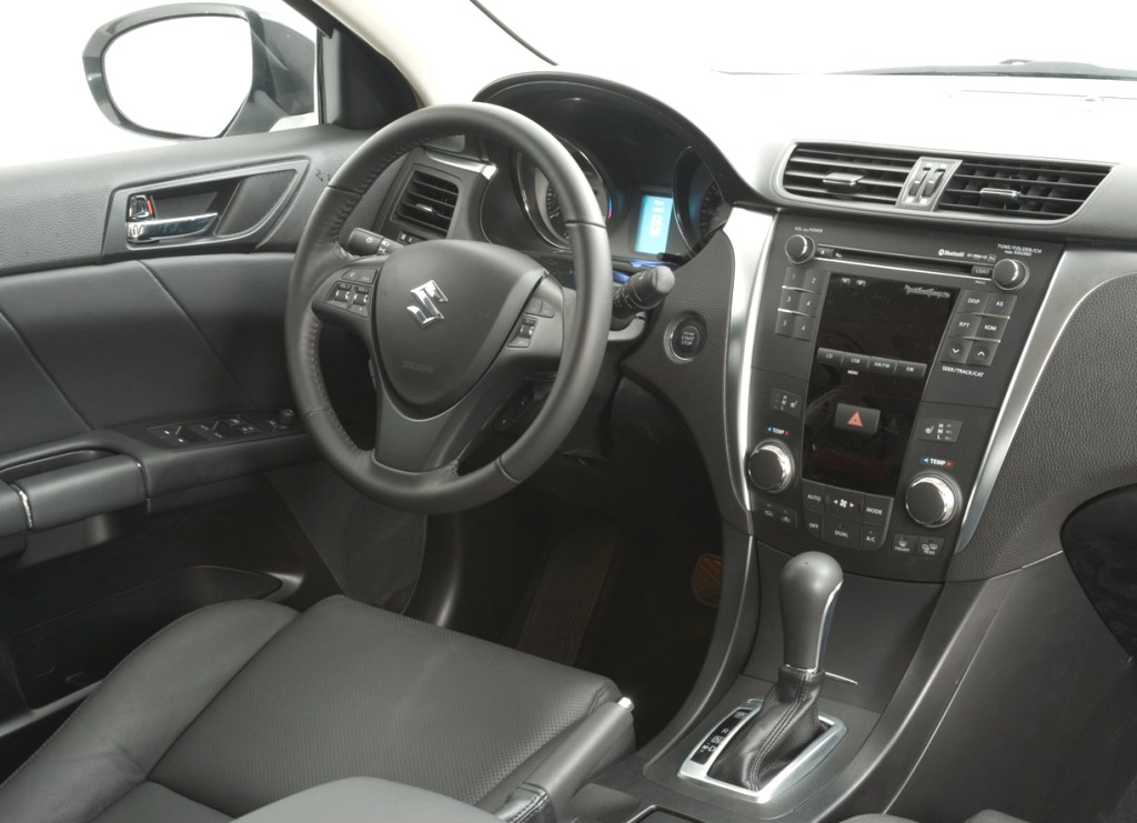 The Kizashi Premium trim comes with extras such as sunroof, cruise control, leather upholstery, 18-inch alloy wheels, 10-way power seats with 3-position memory system, four-way co-passenger power seat, parking sensors front and rear, fog lamps, Rockford Fosgate Audio System with additional sub-woofer, boot-lid spoiler, auto levelling HID headlamps with washers, auto rain-sensing wipers, sport front bumper & side skirts.