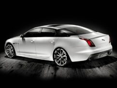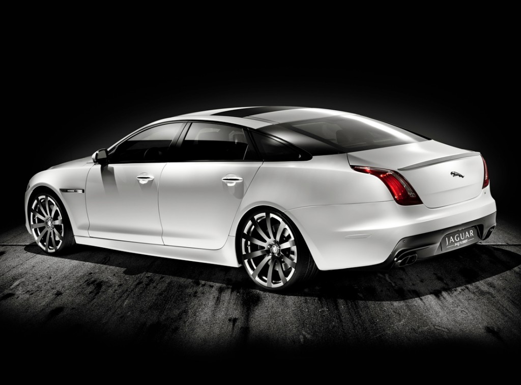 The white-and-black themed Jaguar XJ75 Platinum Concept is based on the 2011 Jaguar XJL Supercharged equipped with the stock 470 hp supercharged 5.0-litre V8, ground-effects and skirts, pearlescent white paint, 22-inch brushed alloy wheels and exterior chrome elements that have been revised to either a dark chrome or gloss black.