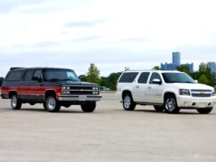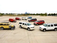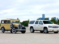 The Chevrolet Suburban is, or was, very popular in the United States and continues to be popular in GCC countries such as Saudi Arabia, where the ability to carry your ten children over rugged terrain is a daily necessity. Surprisingly, the Chevrolet Suburban has been in existence for 75 long years, and GM estimates that up to 2.4 million have been built. General Motors decided to celebrate by bringing together all the iterations of the Suburban over the years for an American media jaunt, while conveniently ignoring the rebadged GMC version. Models from 1936, 1946, 1951, 1966, 1972, 1990, 1999 and 2002 were at hand from GM’s U.S. Heritage Center, while a 75th anniversary Diamond edition of the current Chevy Suburban was introduced.