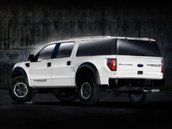 Adding armour protection to an SUV apparently adds around 2000 kilos of extra weight, so the power and handling of the vehicles needs to be upgraded too. Hennessey’s 2012 Hennessey VelociRaptor APV will be powered by a 575 hp supercharged 6.2-litre V8.