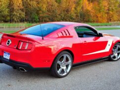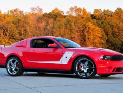 Available as a coupe or convertible, the Roush Mustang features an aggressive body kit with a unique front fascia, side skirts, a modified rear valance, rear-quarter window louvres, front chin splitter, and a three-piece decklid spoiler, as well as a billet grille, sportier suspension and 20-inch wheels with Cooper RS3 tyres.