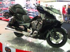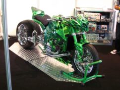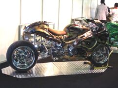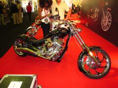 The 2011 Gulf Bike Week is underway at the Dubai Festival City. Set to run from February 10th to the 12th, it is running alongside a big pop concert. Featured are exhibition halls displaying hundreds of motorcycles from various manufacturers, a bike stunt show, and a gathering spot for local bikers to display their personal motorcycles. Harley-Davidson also used the opportunity to announce that they’ve opened a Middle East office in the UAE. We’ve already done a round of the show and scoped out the most interesting bikes that you might like to see.