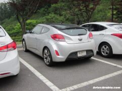 We got a close look at the exterior of a Hyundai Veloster there. The three-door hatchback is set for debut in the UAE by the end of summer, although it remains to be seen what engine makes it here. Hyundai told us that they cannot offer their direct-injection “GDI” engines in the GCC due to the poor fuel quality in many GCC countries. More interestingly, there was a Veloster in camo being tested alongside a VW Golf GTI and a VW Scirocco. This one was most likely the turbo model.