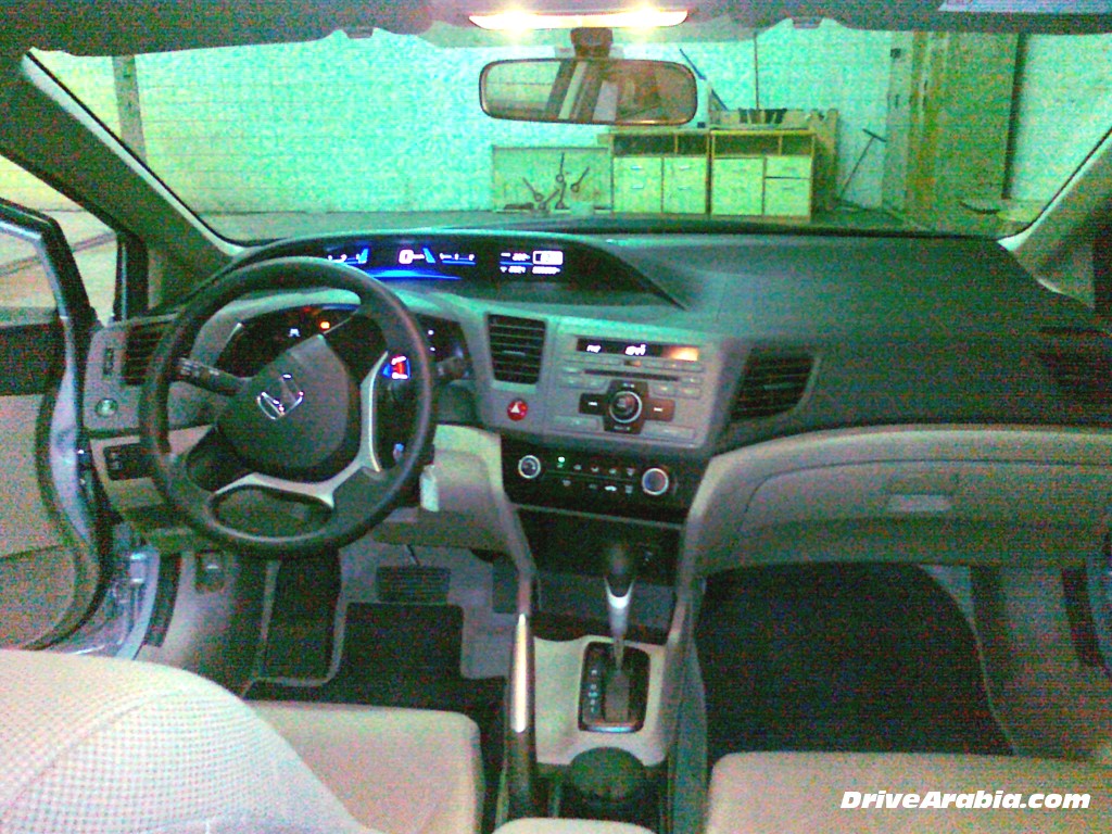 Our reader Syed Hussain sent in these photos, and this is our first look at the GCC-spec 2012 Honda Civic, and some differences from the U.S. version are instantly obvious. For one, our version gets a plain bumper and clear indicator lamps, as opposed to the American-built version that gets orange corner markers and extra bumper vents, as shown below. The plain bumper is apparently available on the economy-minded Civic HF model in the States.