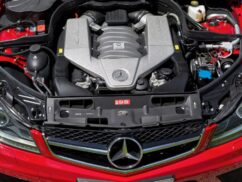 The C63 AMG Coupe Black Series can be had with or without individual rear seats. The interior is chiseled from high quality materials including Dinamica microfibre upholstery known for it’s exceptional fade resistance. Finished in high-gloss black piano lacquer, the dashboard also features a 3D TFT color screen which can be set to display information such as the engine oil temperature, ESP mode and gear selection via the AMG main menu. Safety features include multitude of airbags, seat belt tensioners and belt-force limiters for all seats, ABS, ESP with 3 modes including a “Sport Handling Mode”, tyre pressure monitoring system and electronic cruise control.