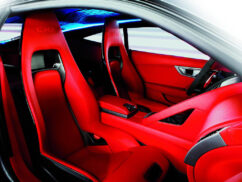 Designed by Ian Callum, Director of design of Jaguar, a stunning rear with that odd opening window makes the XK inspired front look rather boring and dated in comparison. We don’t dig the red-overdose interior but the grab-handles and carbon-backed seats seem like they mean business.