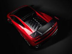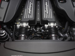 Taken off from the race car, the Super Trofeo Stradale has a manually variable carbon fibre rear spoiler that results in better aerodynamic load for better high speed driving. Another element taken directly from the racing version is the removable carbon fibre engine hood with a quick-release system. Together with aluminium, carbon fibre is the basis behind the extremely lightweight construction of Gallardo’s new top model.