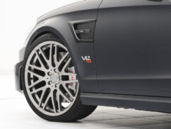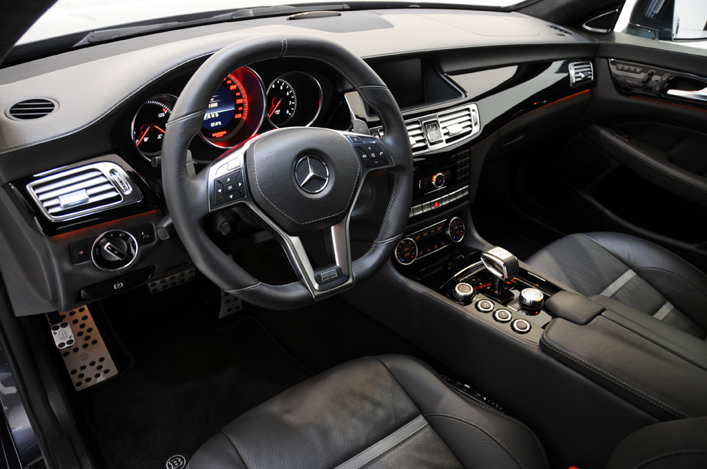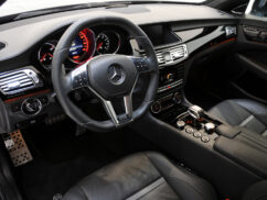 The exterior gets carbon fibre flared fenders widening the CLS by 40mm and an aerodynamic-enhancement kit to reduce drag and lift consisting of integrated front spoiler and air inlets for the ram-air intake, air vents in the front fenders, side skirts with integrated entrance lights, rear wing and rear diffuser, rear fascia with side air vents. Sports steering with aluminium paddles, aluminium pedal set, stainless-steel scuff plates, all leather grey combined with high-gloss-polished black piano wood and alcantara headliner and a speedometer with a 400 kph dial is all part of the custom-tailored interior.