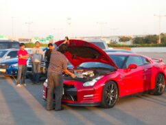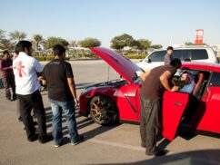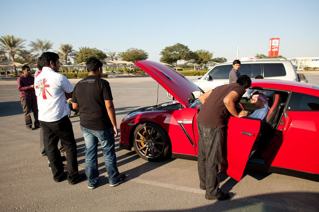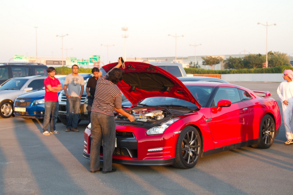 The 5th DriveArabia Meet was held on Saturday, the 24th of December, at the tail-end of 2011. We kept it a low-key event at Dubai Festival City, sending direct invites to a few regulars at the last minute, while announcing the event only a couple of times publicly. Those who showed up were in for a treat, as the chief guest of this meet was the 2012 Nissan GT-R, the latest fresh-out-of-the-factory iteration of the Japanese supercar. Ironically, the largest number of people ever had showed up for our so-called low-key gathering, and we even decided to let everyone have a spin in the GT-R, so they all can now say “I drove a GT-R!” to their jealous friends. Our meet-turned-promo even convinced a couple of attendees to save up for a GT-R. The few that were left after sunset were even treated to a pizza dinner. Photos by Faisal Khatib, Marouf Hussain Chowdhury and The Bazooka Brothers.