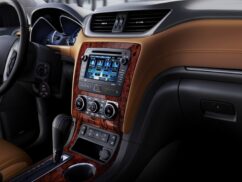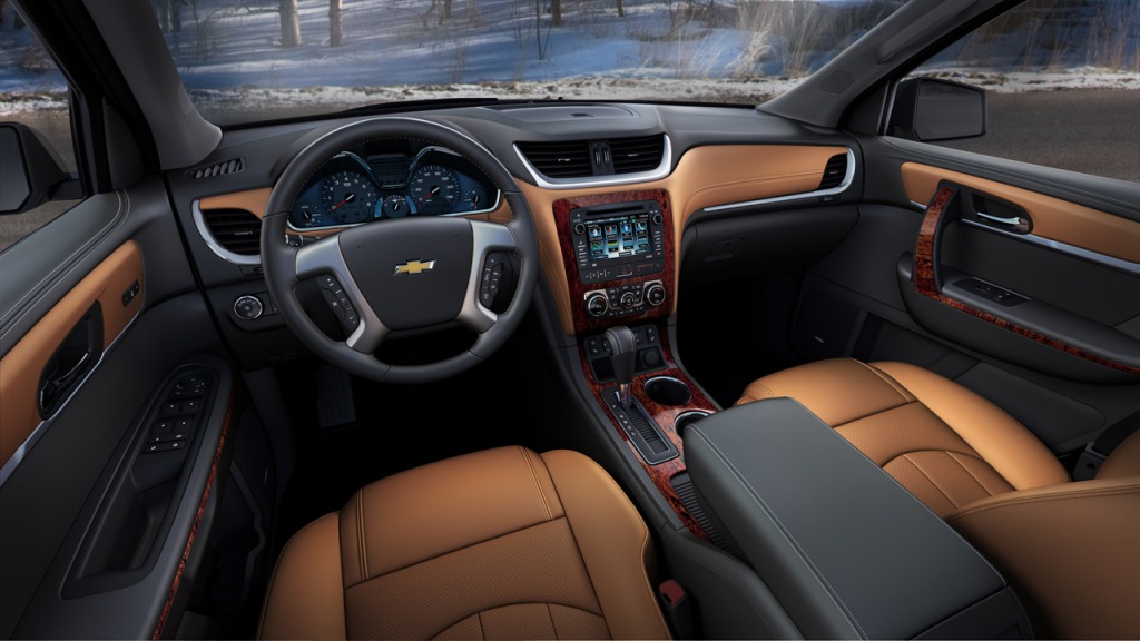 The Traverse’s hard-plastic interior largely remains the same, except for some fake-leather bits tacked on. The most distinct addition inside the cabin has been the introduction of MyLink, GM’s infotainment system that supports Bluetooth voice and audio and other applications.
