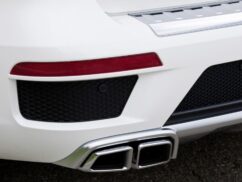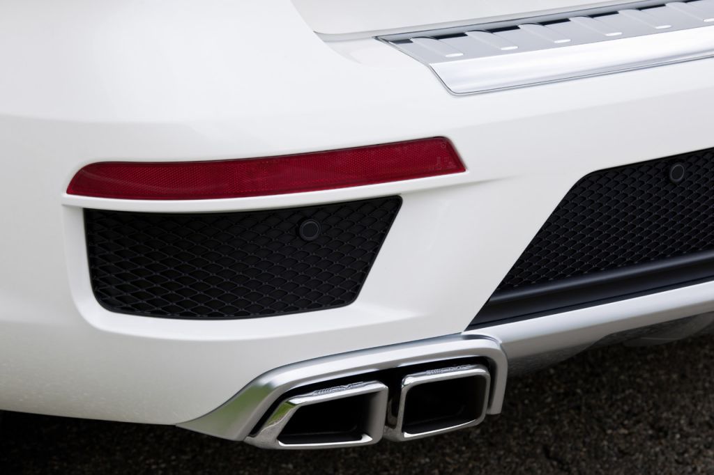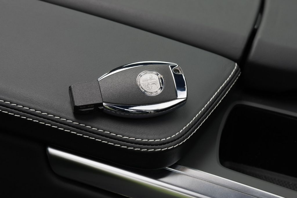 The profile is further enhanced by “V8 BITURBO” badges on the fenders and illuminated sills with an aluminium finish. A visual and acoustic highlight is provided by the two chromed twin end-pipes of the AMG sports exhaust system.