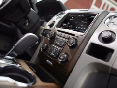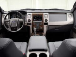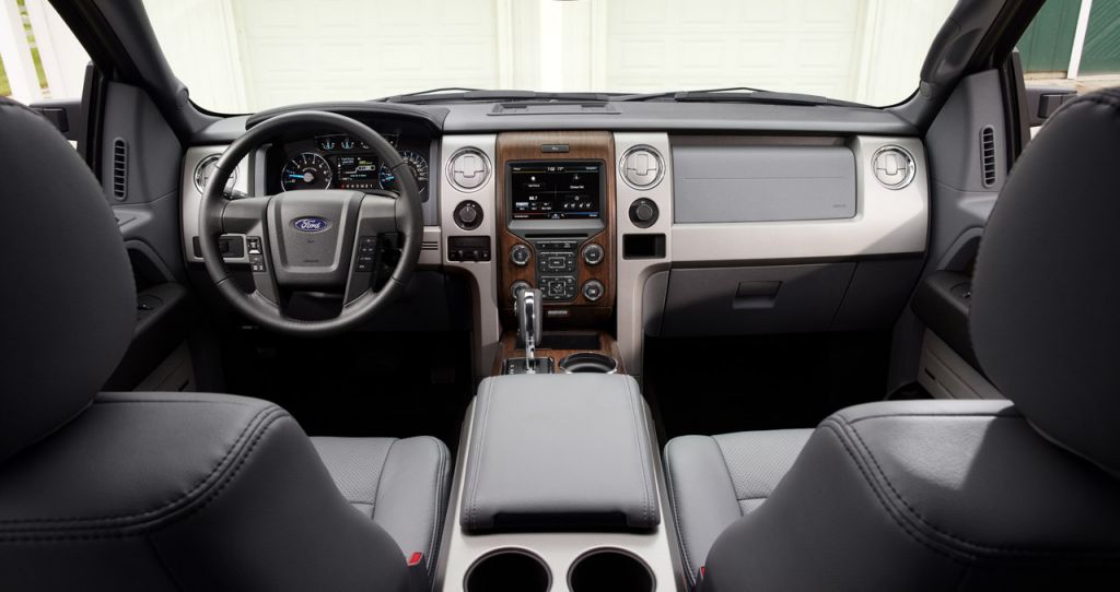 The cabin insides come in steel-gray on the Lariat and a black interior for King Ranch. Both of these series receive upgraded wood grain appliqués to enhance premium style. The FX Appearance Package adds Alcantara seat inserts while the Platinum series offers Black or Pecan leather upholstery.