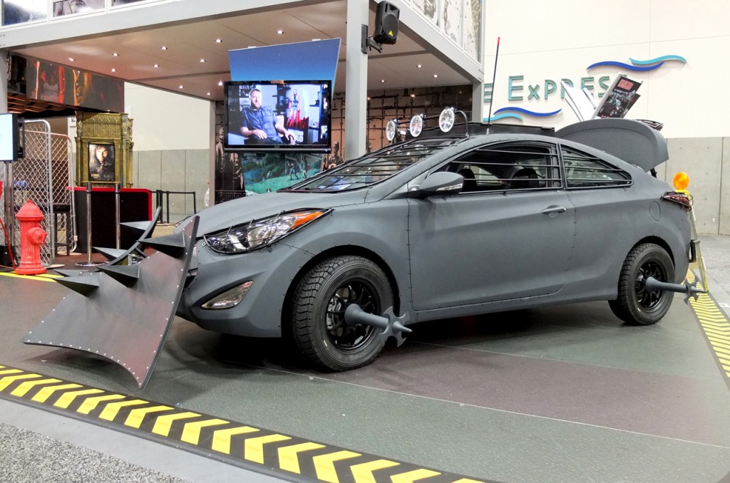 If you keep track of good TV, you might have caught The Walking Dead series, a gritty realistic take on the zombie apocalypse theme. Few of you would realise though that the show is actually based on a comic book series. The 100th issue of the comics was just commemorated with this Hyundai Elantra Coupe Zombie Survival Machine.