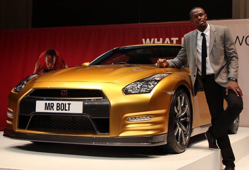 Usain Bolt teamed up with Nissan in June 2012 as a brand ambassador. Nissan prepared the special 2013 GT-R Premium Edition, painted ‘Bolt Gold’, for the charity auction to commemorate Bolt’s Olympic gold medals. The car will feature a gold plate embossed with Bolt’s autograph.