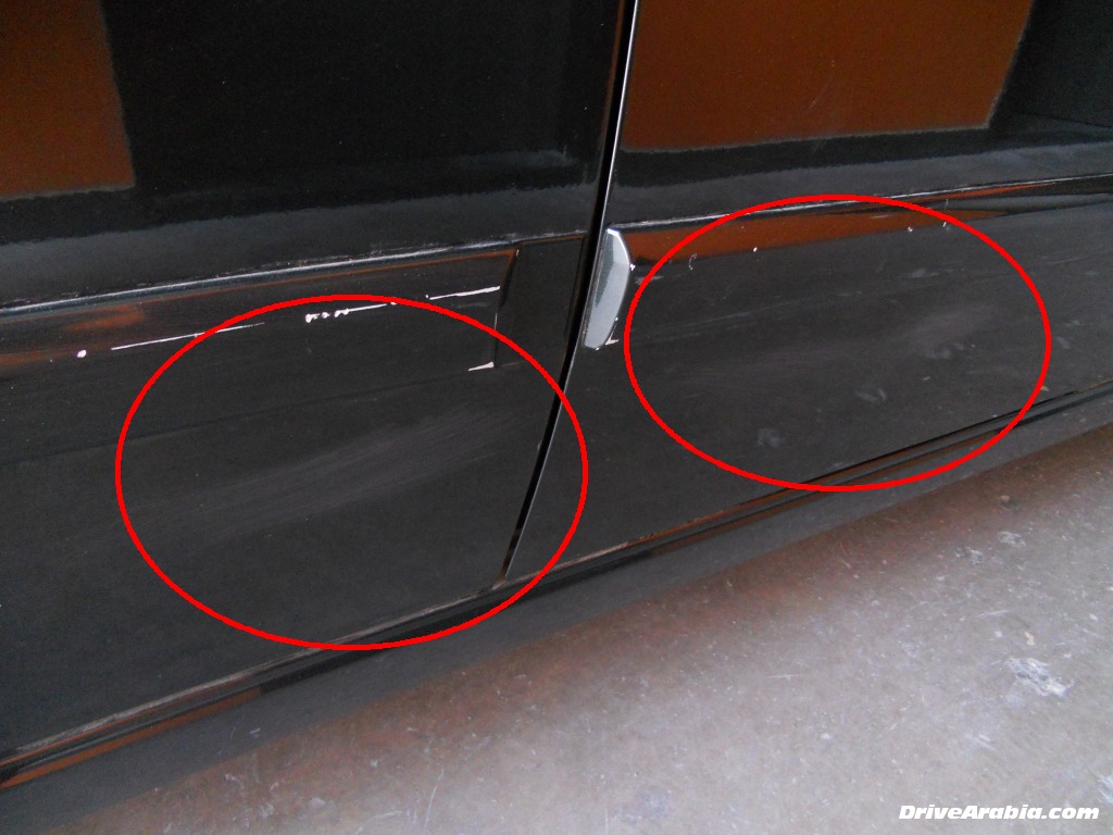Our Gangnam Style star’s paint was getting a bit dull from standing in the sun daily as well as being washed by a street dude. Also, there were some minor white patches on the lower doors, which we ourselves caused by using a supermarket scratch-removing liquid to remove some small scratches left by some moron. The liquid removed the scratches all right, and a whole lot more! It created a patchwork of white micro-scratches, as seen here.