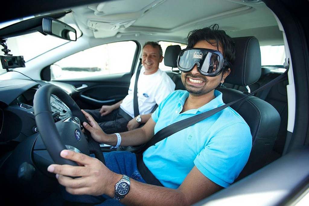 The second exercise involves driving a Ford Focus around a coned course while wearing “beer” goggles, where you wear goggles that completely messes up your view, and you have to drive around the course, with an instructor watching over you of course. This simulates driving while drunk, tired or under medication.