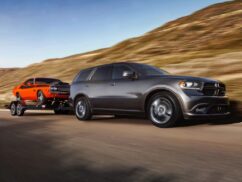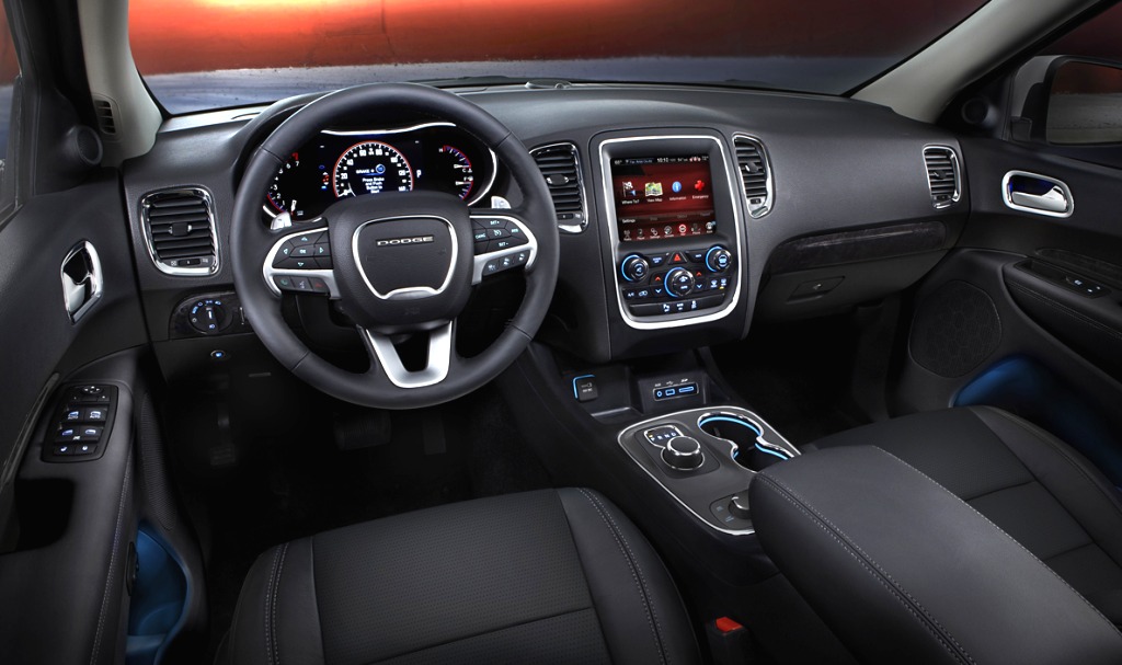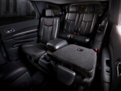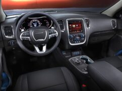 Inside the cabin, the Durango finally gets Dodge’s other signature option — the 8.4-inch touchscreen for multimedia and navigation functions. Other optional features include a heated steering wheel, heated second-row seating and a Blu-Ray player capable of running individually on the twin rear monitors. The gear shifter has also been replaced by a rotary dial.