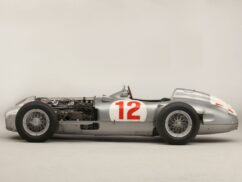 Still, battered by racing and time, this car poses as an important piece of history to both Formula One and Mercedes-Benz alike. According to Bonhams, Fangio’s wins gave Mercedes its first back-to-back post-war Grand Prix victories, and it introduced F1 cars to fuel-injection, tubular spaceframe chassis construction and inline 8-cylinder engines.