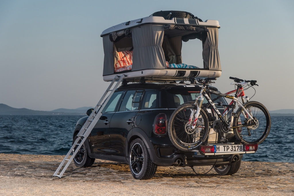 However, the coolest thing here has to be the Countryman ALL4 Camper, which is basically a Countryman with a specialised tent mounted on top. The tent’s upper portion unfolds from its box and becomes a second-storey mobile living area whenever it’s needed. And, a Countryman isn’t particularly required to mount it to the top of a Mini, as the tent can be mounted to any Mini model.