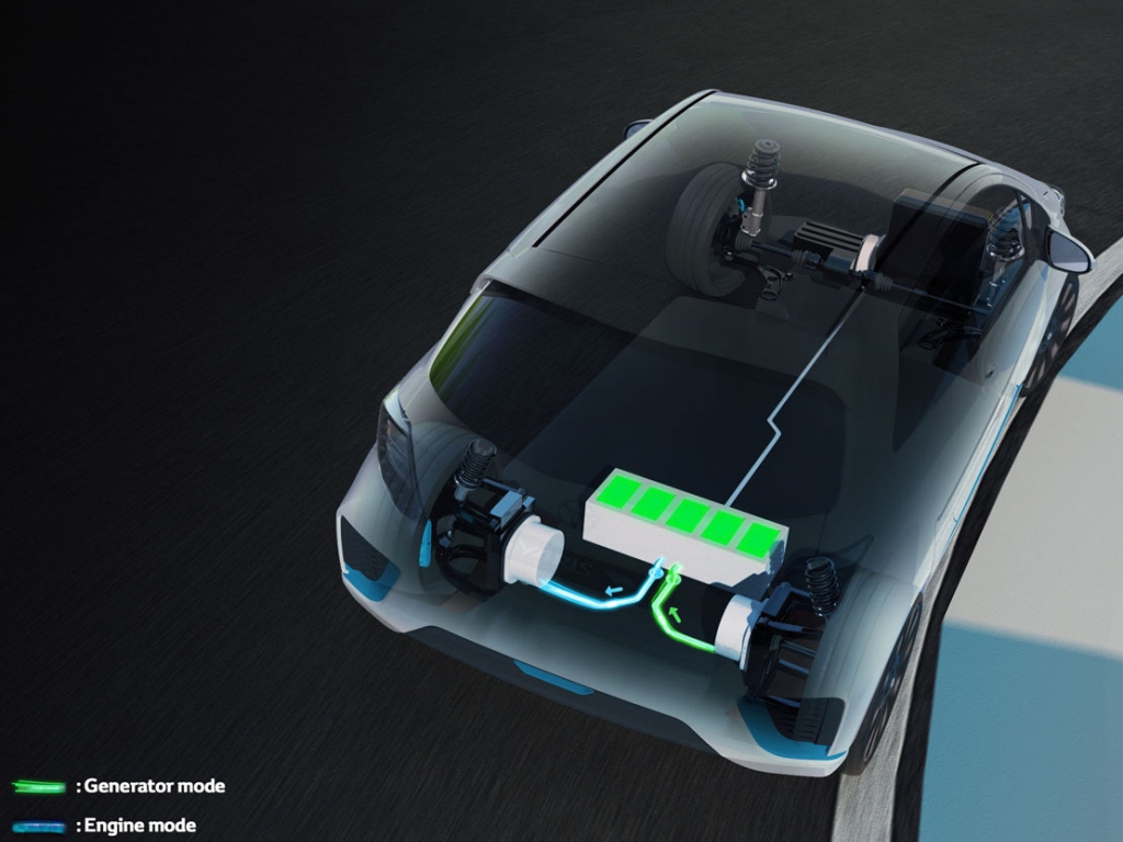 However, the latter only happens when engine power and torque exceed the front wheels grip limit. The generator works like an advanced traction control system, redirecting torque as electric energy to the rear wheels to boost acceleration and improve handling, rather than simply to limit engine power. This torque distribution makes it more like a differential. Torque is measured at about 420 Nm.