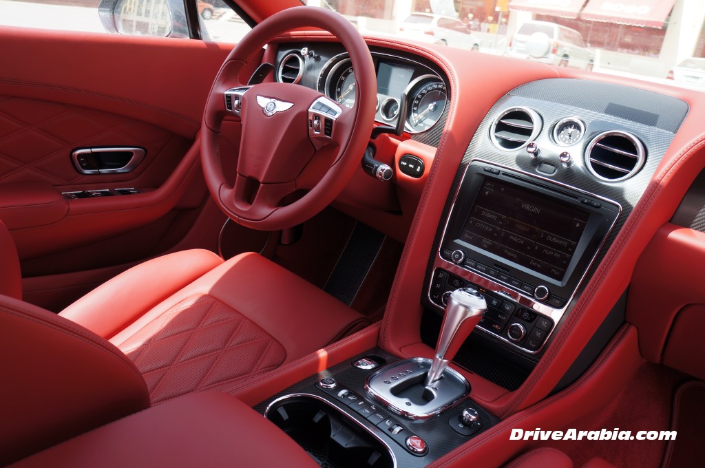 As with any Bentley, even the V8’s interior can be customised as much as the catalogue allows. We actually liked the trim options picked in this test car more than than in the W12 Speed we drove a few months ago, such as the quilted leather door inserts instead of wood, and the carbon-fibre dash inserts surrounded by red upholstery.