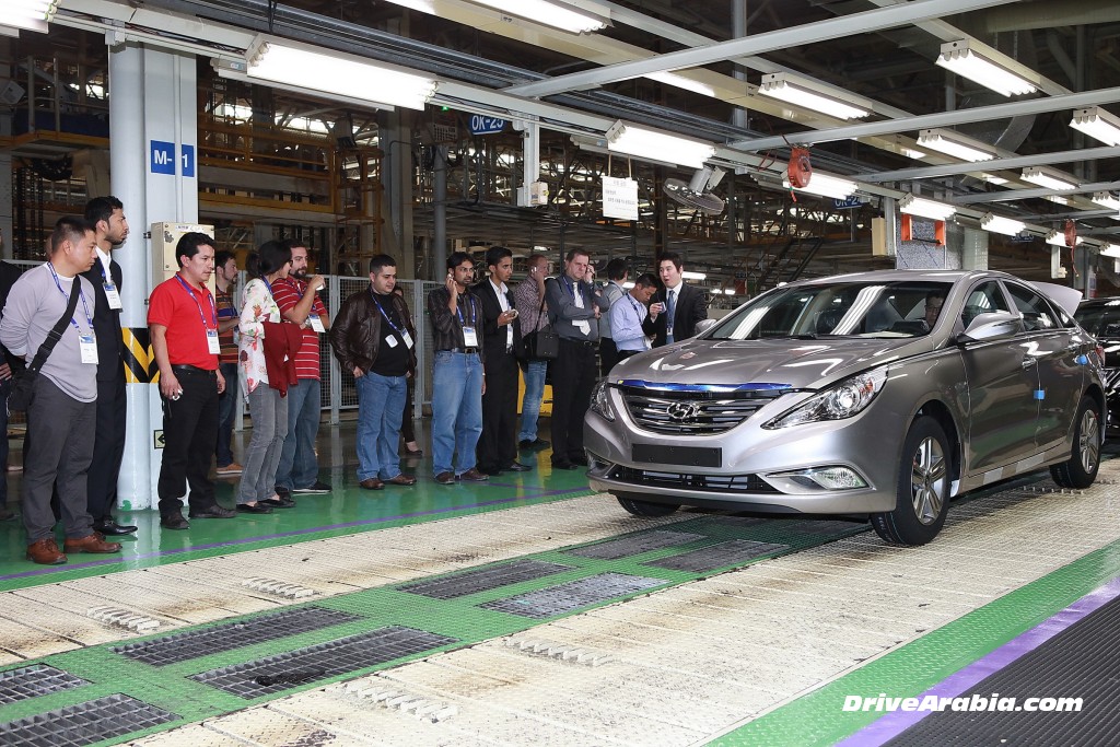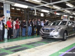 You’d think there are separate lines for the Sonata and the Azera, but both cars are built on the same lines, seemingly done at random, but in reality, a mega computer is keeping track of everything, down to the box of parts that a worker receives down the line to install on a specific car. Several variants are thrown into the same assembly line as well. We saw Azeras, basic and top-spec Sonatas, Sonata Hybrids and CNG variants, and even a few previous-gen fleet-spec Sonatas, all being built on the same assembly line. The amount of computer-controlled automation is tremendous. No wonder their build quality rivals the Japanese nowadays. The clean factory even seems to be designed for tour groups like ours to safely walk around in, and in some parts we were even able to touch the cars are they rolled down the line. They were churning out one car every 45 seconds by our count. This one factory builds 1,200 cars per day, and Hyundai has several more plants in Korea and around the world.