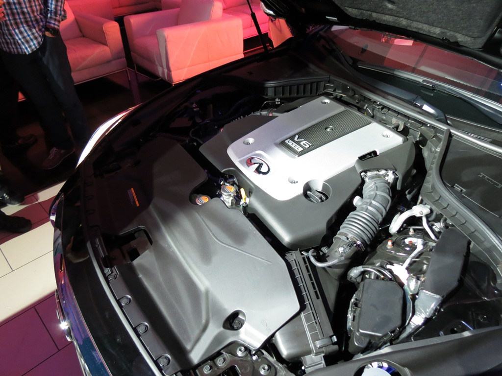 For those who are not updated, the Q50 is the replacement for the former G sedan, and is the first of the redesigned Infiniti models subject to their new naming system. The Q50 will be offered with two powertrain choices — a 3.7-litre petrol unit, carried straight from the G37 sedan which cranks out 328 hp and 361 Nm of torque, and a hybrid powertrain featuring a 3.5-litre supercharged petrol engine alongside electric motors, rated at a combined output of 360 hp and 546 Nm of torque.