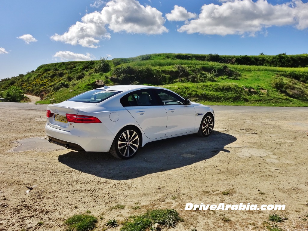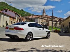 Having landed at the small Vittori airport, we drove right from the terminal in an XE with a “25t” badge, which meant it had the 237 hp turbocharged 2.0-litre inline-4 petrol engine with 339 Nm of torque, mated to an 8-speed automatic and rear-wheel-drive. It’s the same motor found in the Range Rover Evoque, except that it feels more potent in the smaller XE.