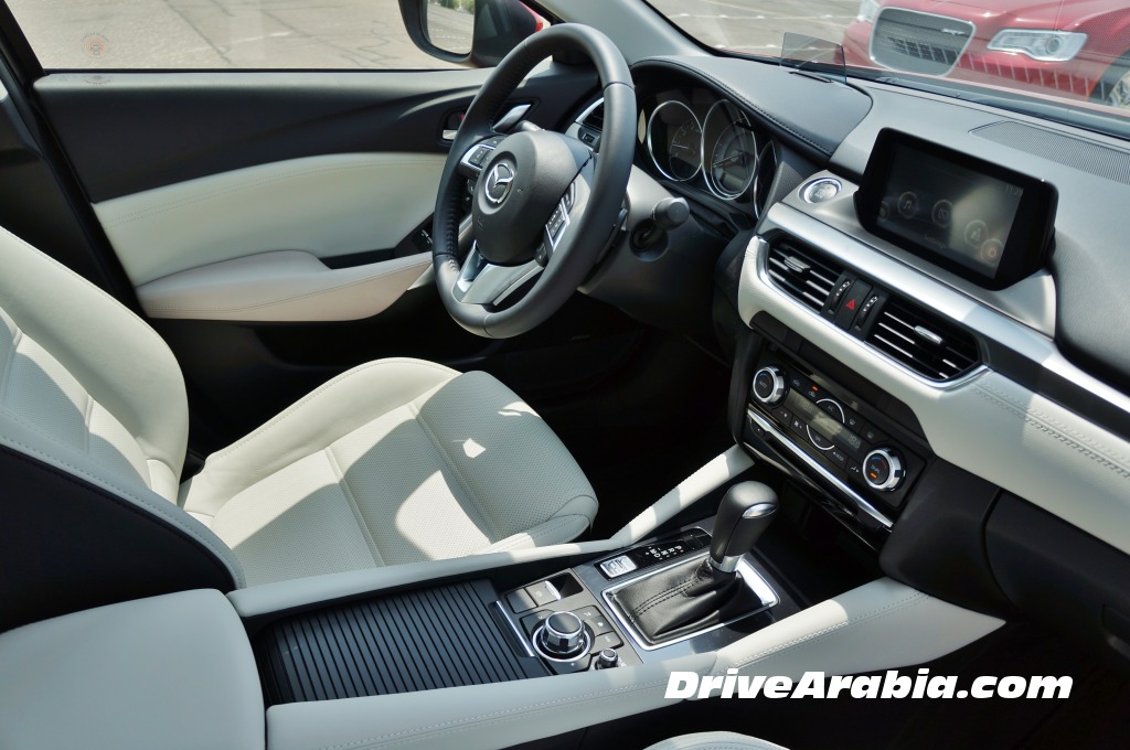I happened to check out the the new Mazda 6 .This vehicle happens to be the fully loaded top end version and priced at around AED 116k along with other offers.So the tech and and other gadgets on this model will not be there in the below spec models of Mazda 6. Drive wise the car is rather good and excellent seating along with good cabin materials.So currently among the Japanese vehicles in the Midsize Sedans this is the only vehicle that is Made in Japan considering Accord is from China,Altima – USA , Camry – Australia / USA .