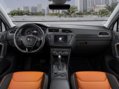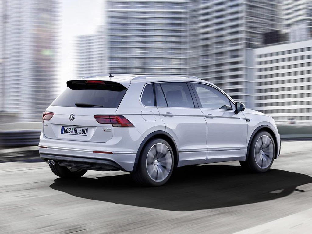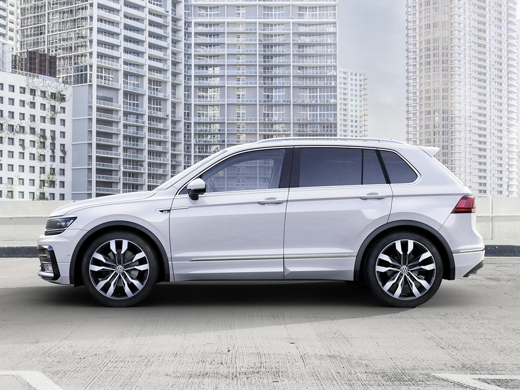 The Tiguan R-Line gets 19-inch Sebring wheels with 20-inch wheels optional, sportier front and rear bumpers, two-tone roof spoiler and a glossy black diffuser. The interior features cloth and microfibre upholstery, with Vienna leather optional, aluminium door sill guards, stainless steel pedal covers and footrest, leather-wrapped steering wheel with the R-Line logo and black headliner.