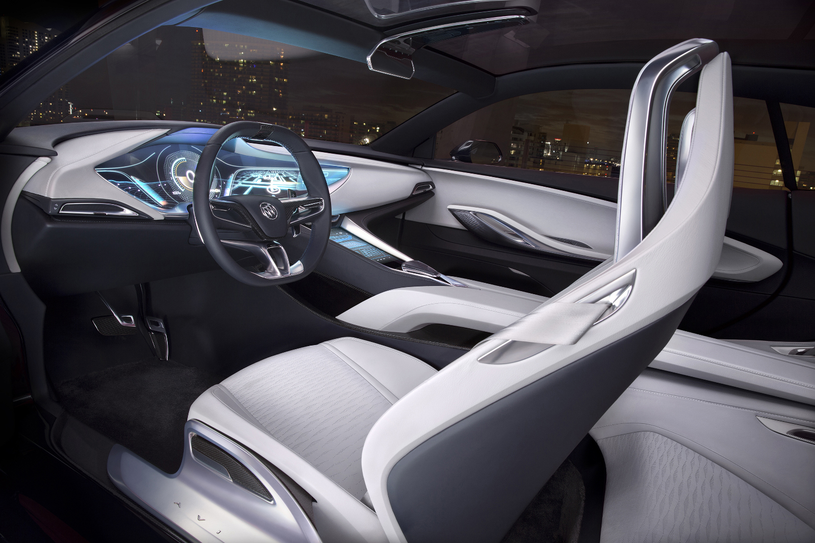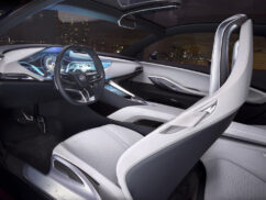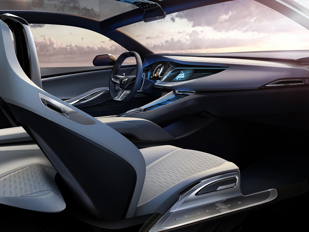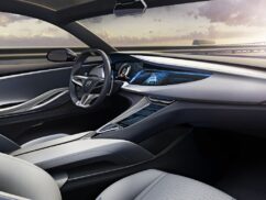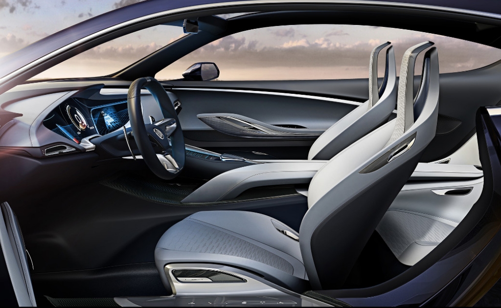 The interior receives typical Buick treatment, with ‘Superior Blue’ and ‘Mist Gray’ leather upholstery, carbon-fibre trim and aluminium accents on the dash and the seats. The car will also be fitted with a fully-digital instrument cluster, IntelliLink infotainment system and touchscreen controls on the full-length centre console. Other features include a panoramic glass roof and two individual rear seats.