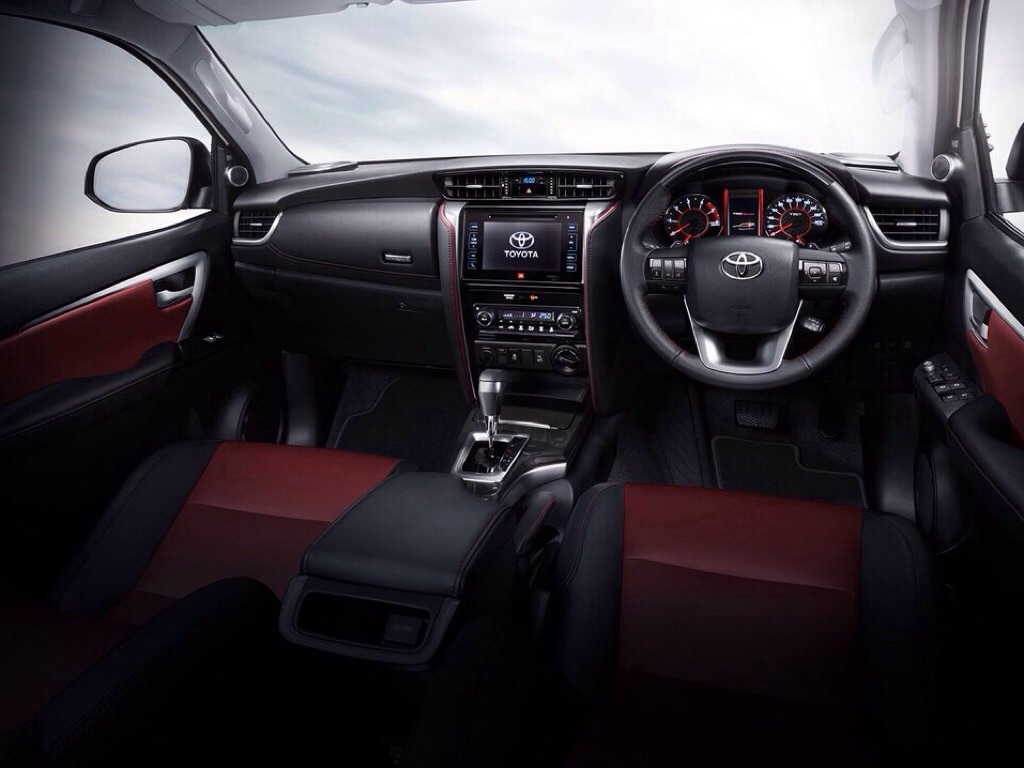 OIn the inside, the Sportivo comes with a red TRD starter button and matching black/red seat upholstery. The dashboard gets smoked chrome, while the 7-inch touchscreen is carried over from the standard Fortuner which features Toyota’s T-Connect.