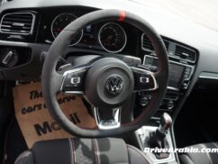 Inside, it’s standard Golf fare. Nothing to see here if you are familiar with Golf GTIs. Interesting details include the new upholstery on the seats and the subwoofer within the spare wheel.