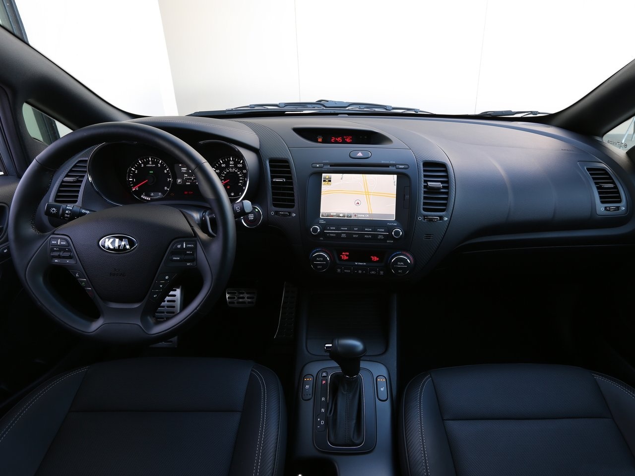 The Kia Cerato has a whole bunch of premium features available as standard or as options, such as HID headlights, LED running lights, LED tail lamps, fog lamps, 4.2-inch colour information screen in the gauge cluster, cooled front seats, power-adjustable driver’s seat with memory, keyless entry, smart key with push-button start, power windows, dual-zone automatic a/c, rear a/c vents, cruise control, mirror-mounted indicator lights and a sliding front armrest.