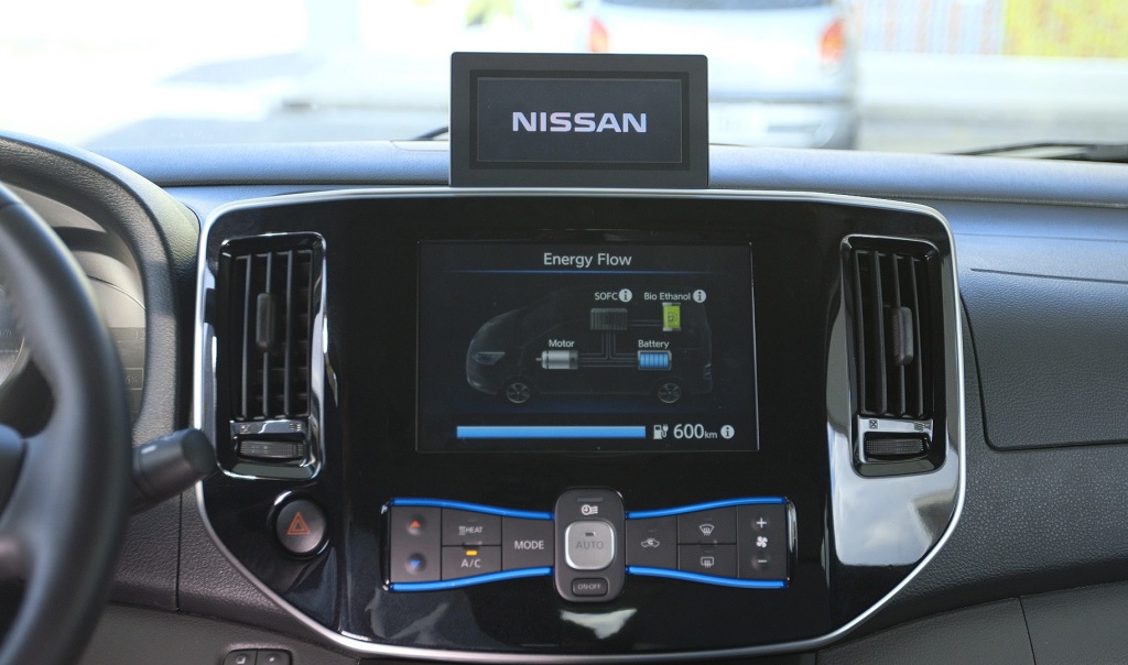 Nissan has revealed what they claim to be the world’s first Solid Oxide Fuel Cell-powered (SOFC) prototype vehicle that runs on bio-ethanol electric power.