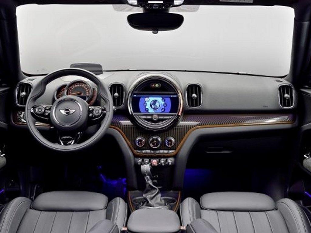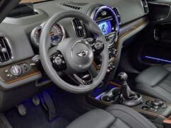 Besides the aesthetic unexpectedness like extended ground clearance, raised seating position and more model-specific design elements such as the helmet roof, the upright rear lights, hexagonal radiator grille, the new Countryman also gets headlamps with a revised asymmetrically rounded contour replacing the circular ones typical to the brand. And there is a band of light running entirely around each headlamp and new side mirrors with arrow-like shape side turn indicators and it allows for projection of the Mini logo from the exterior mirror on the driver’s side when the front doors are being opened or closed. 16-inch light alloy wheels come as standard but they can be upsized to 19 inches. On the insides, the profile of the air vents echoes the vertical orientation of the exterior design elements and the signature dinner-plate sized central instrument with its LED ring surrounds remains.