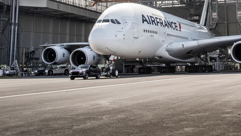 Porsche Cayenne Diesel pulls A380 to break world record