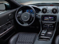 A few visual updates are added to the package to make the XJR575 look more aggressive than the regular versions. A full body kit, along with front and rear spoilers and vents in the hood give the body of the sedan some sports appeal. The 20-inch wheel fills in the arches to complement this look nicely. Two new shades, Velocity Blue and Satin Corris Grey are added to the brochure by Jaguar’s Special Vehicle Operations division to give the XJR575 a distinct appearance.