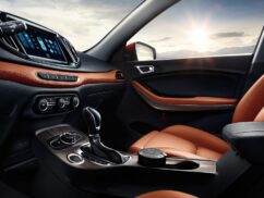 Moving inside, the new Chery features a dual-tone interior with a patch of stitched leatherette across the dashboard and onto the inner door handles, matching the leather seats. The 9-inch capacitive touchscreen includes multimedia features, a/c settings and vehicle settings, while there’s also a 4.8-inch LCD dashboard screen. Other available features include smart keyless entry and start, dual-zone auto a/c and 360-degree camera as well as a panoramic roof.