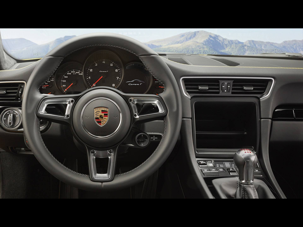 The lightness is not the only thing that comes standard with the Carrera T. It also gets the Porsche Active Suspension Management (PSAM) which lowers the car by 20mm. The “Sport Chrono Package” is also optimised for the lighter T. The manual gearbox is tuned with shorter ratio and a shorter lever. The four-wheel steering system from the higher 911 models can be added as an option.